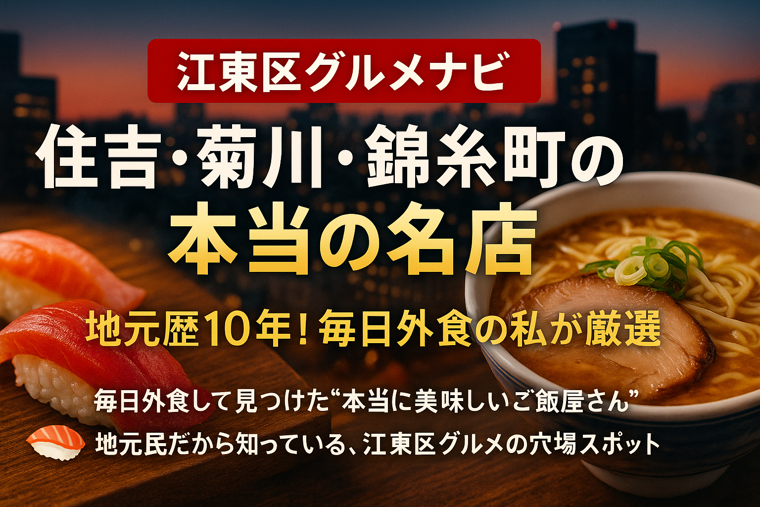 江東区住吉に暮らして10年以上、毎日外食を続ける私が本当に美味しいと感じたご飯屋さんを紹介するグルメ情報サイトです。