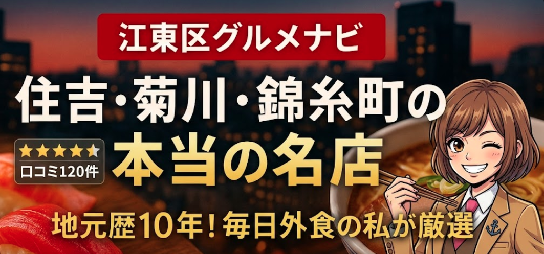 - 江東区住吉・菊川・錦糸町グルメブログ|初めての投稿はじめまして!このブログでは、江東区住吉・菊川・錦糸町エリアを中心に、地元民が実際に通うおすすめグルメ情報を発… 続きを読む: 江東区住吉・菊川・錦糸町グルメブログ|初めての投稿